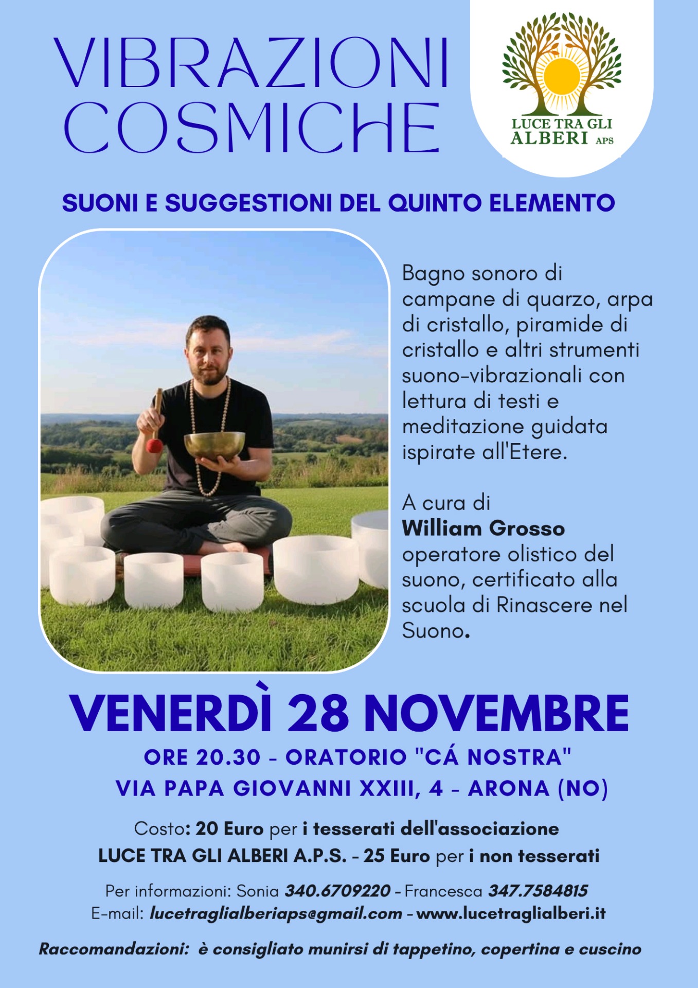 Meditazione, letture e frequenze ispirate all'Etere: il respiro del cosmo che tutto unisce, a cura di William Grosso – Crystal Sound Mastery, operatore olistico del suono certificato dalla Scuola Rinascere del Suono.